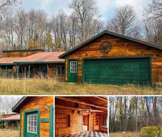 The home offers a warm, rustic feel with “natural woodwork,” beamed ceilings, and an open living space centered around a
