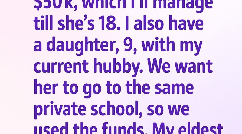 I have a daughter, 16, from my first marriage. Her late dad left her $50k, which I’ve been managing for her until she turns 18. I also have a younger daughter, 9, with my current husband. We wanted our youngest to attend the same private school as her sister to give them both equal opportunities. Since we were struggling financially, we decided to use some of the money her late father had left behind.